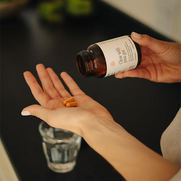 Glow With Your Gut targets two of the most common wellness concerns in one capsule: skin health and gut health. Our capsules include potent ingredients that protect skin cell health, hydrate the skin and enhance collagen production. We've also included a blend of pre, pro and post-biotics that help to support optimal digestion (without the bloating and discomfort).